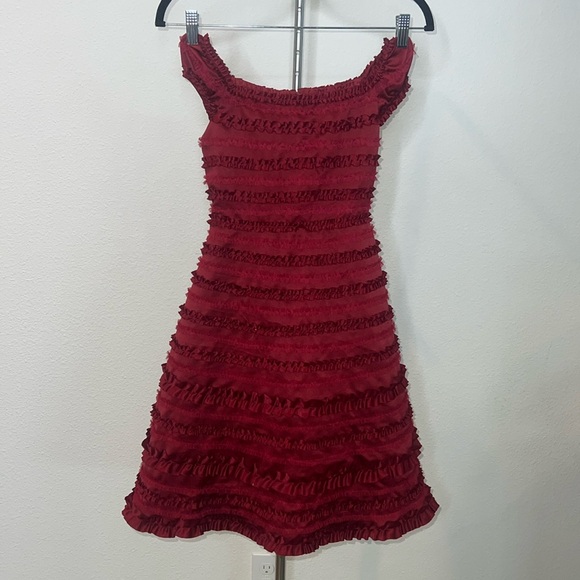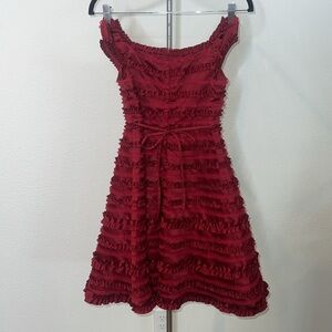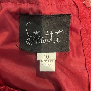 VGUC size 10. Color is cardinal red. Back zipper closure and attached tie around waist. Approximate measurements: armpit-14”, length-31 1/2”. J32-5254