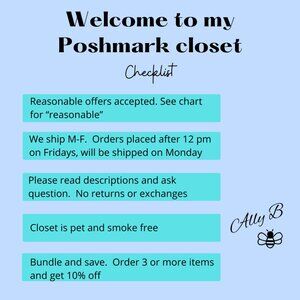 I will attempt to match prices for similar items you find elsewhere. But please understand that my closet is reasonably priced. Please do not send low-ball or insulting offers—they will be declined. Thank you for your interest. ⚜️ Ally B