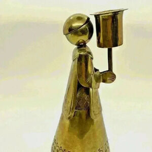 **Title:** Unique Rare Stamped Brass Candle Holder - Bishop / Acolyte - Made in Mexico - 6.25 inches