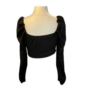 Bishop Sleeve Corset Top Black Knit Square Neck Front Cropped Long Sleeve S