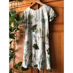 Bishop St Apparel Made in Hawaii Midi Short Sleeve Dress Tropical Leaves Green M Nice