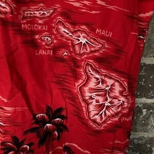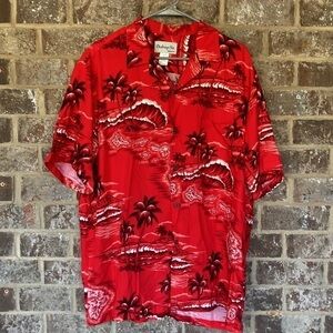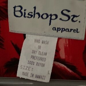 Bishop St. Apparel vintage red , black, white men’s shirt in a size large. Gorgeous design. Waves. Islands. Button down front. Armpit to armpit measures 24”. Shoulder to hemline measures 29”. 100% rayon. Hand wash or dry clean. Gently preowned condition.