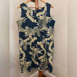 Bishop St Apparel XL Hawaiian Tropical Pineapple Print Sleeveless Cotton Dress