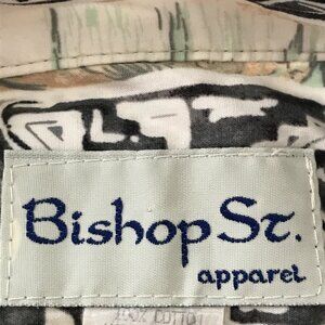 Bishop Street Hawaiian Shirt Men 2XL Gray Geometric Tribal Button Up Pocket