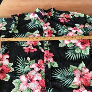 Bishop Street Hawaiian Shirt Men XL Green Floral Button Up Pocket Short Sleeve