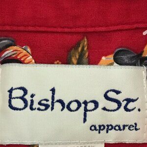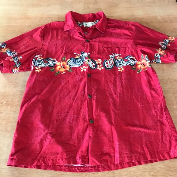 Bishop Street Shirt Men L Red Motorcycle Floral Button Up Pocket Short Sleeve