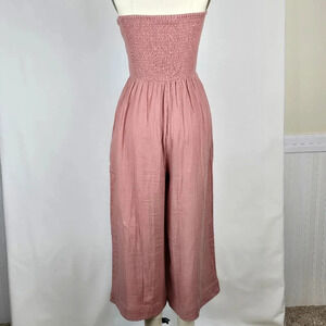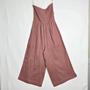 Bishop + Young Antropologie Elvia Tie Front Jumpsuit lagenlook Very lightweight, breathable and comfortable, allowing for easy all day wear. Perfect length to pair with your favorite mules. Dress it down with a flat sandal and dress it up with your favorite fun heel for a night out. Wide leg (28 inches), cropped Pant length from the elastic 33" Stapless, smocked bodice with self tie, pull on 2 side pockets Size: Small 100% Cotton (Gauze Soft)  Hand wash cold, do not bleach, lay flat to dry.  ***NEW WITHOUT TAGS*** The tags have been removed, but the jumper has not been used (wrong size), only tried on.   Hand wash cold, do not bleach, lay flat to dry. Retail price: $105 Coming from a smoke/pet free house.