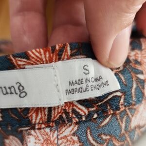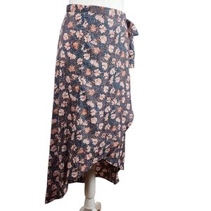 This stylish midi skirt from Bishop + Young features a sleek faux wrap silhouette with an eye-catching asymmetrical hemline. Perfect for casual or resort wear, the skirt's blue and coral tones add a modern touch, while the lightweight fabric ensures a comfortable fit.