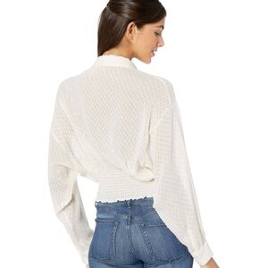 New with tags by Bishop + Young. Harper tie front sheer top with smocked back waist. Size medium.