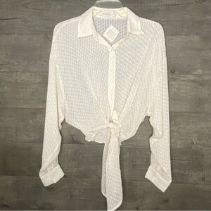 Bishop + Young Harper Tie Waist Button Front Sheer Top NWT Size Medium