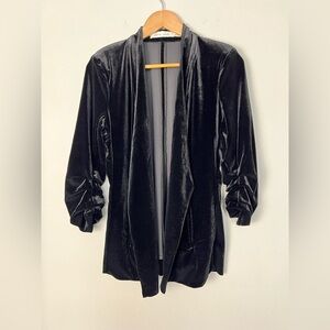 Bishop + Young Icon Blazer Black Velvet Ruched Sleeves