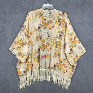 Bishop + Young Kimono Cardigan Womens Medium Large Beige Floral Fringe Sheer