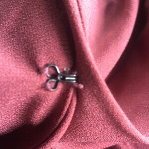 The V-Neck front has a hook closure if you want to adjust the depth of the neck. It has a thread loop to secure the hook (see photos)