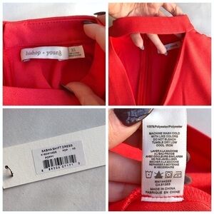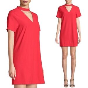Bishop + Young Sasha Choker Shift Dress in poppy color. Crepe fabric . Mock turtleneck with v cutout. Short sleeves. Shift silhouette. Hidden back zip. Polyester. Brand new with tags. Approx. 33” long with 34” bust.