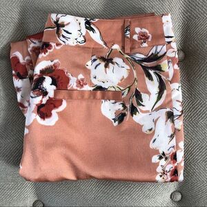 New without tags, Bishop + Young satin floral high rise pants with 11.5” rise. Relaxed through the thigh and tapers toward the ankle. 28” inseam. 14” straight across the waist. Please note that the color is salmon and not strictly pink or orange. That is not a color option so I’ve done my best.