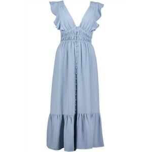 Bishop & Young Sea Blue Santorini Midi Ruffle Dress Women's XS Coquette Cottage
