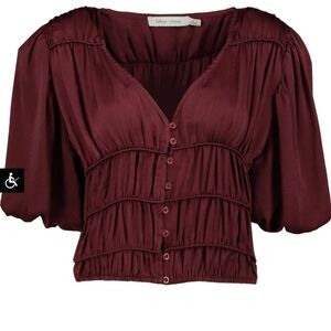 NWOT Anthropologie Bishop + Young Maya blouse in the color Foxy which is a maroon. Beautiful puffed peasant sleeve button down front very cottage core vintage inspired. Size Large