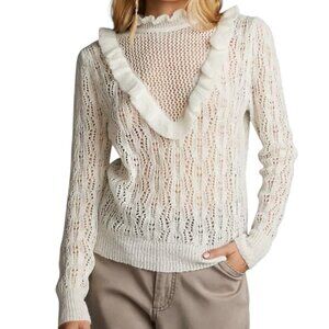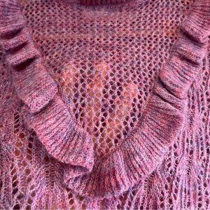 Bishop + Young ruffled v-neck open knit crochet sweater XS excellent condition