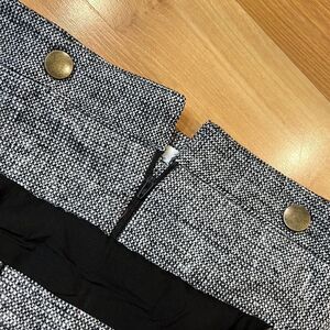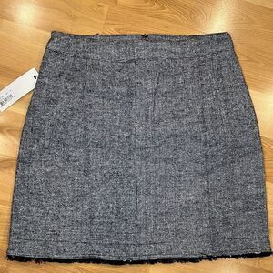 NWT Tweed mini skirt with frayed hem. Zippers in front and button facade hides it. Please see photos for hips/waist measurements. Approximately 19” long. Various sizes available.
