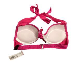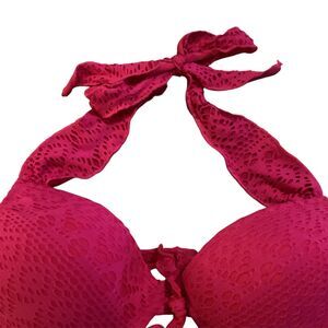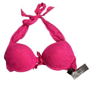 Bisou Bisou Bikini Halter Top Bright Pink Lace Woman's Size Medium