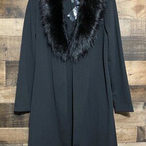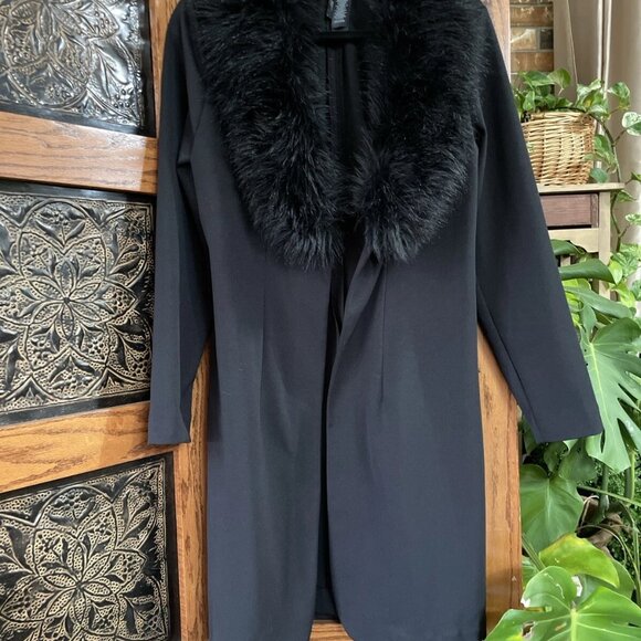 Bisou Bisou Black Coat/Duster with Removable Fur Collar Large