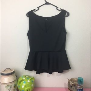 • Black Peplum Tank Top • Bust: 34 in. • Length: 24 in. • Shoulder-to-shoulder: 13 in. •