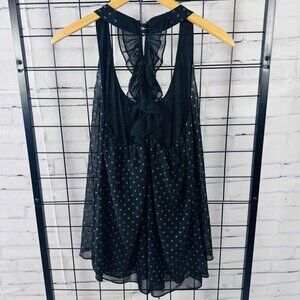 Bisou Bisou Black Polka Dot Sleeveless Chiffon Top – Size M