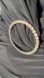 Rhinestone or crystal round pin at front center of front gathers under deep v-neck