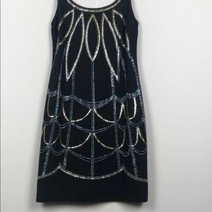 Black tank top dress from Bisou Bisou. Silver and gold studded detail on the front. Size 2. Good used condition.