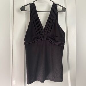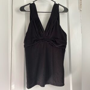Bisou Bisou Black Tank Top with Ruched Details, Size: XL
