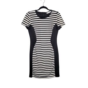 Bisou Bisou Black & White Striped Slimming Short Sleeve Bodycon Dress Size 12
