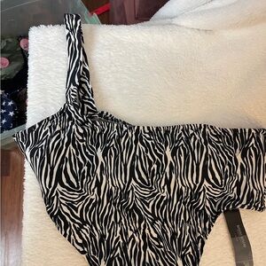 Chic black and white swimsuit. Elegant design with stylish accents.
