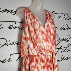 Bisou Bisou Blouson Multicolor Faux Wrap High Low Plus Dress