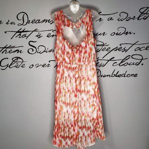 Bisou Bisou faux wrap dress with elastic cinched waist, flattering high-low cut hem with cutout back.