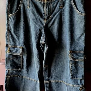 Bisou Bisou Blue Denim Cargo Capri Pants Jeans Size 10