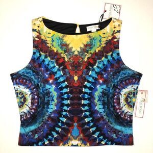 Bisou Bisou Colorful Tie Dye Printed Sleeveless Crop Top Shirt Women's M
