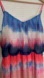 EUC Beautiful spaghetti strap maxi dress with a tie-dye style stripe pattern. Shades of pink, coral/orange, and blues blend together to make a striking combination. Perfect for winter vacations or summer outings.