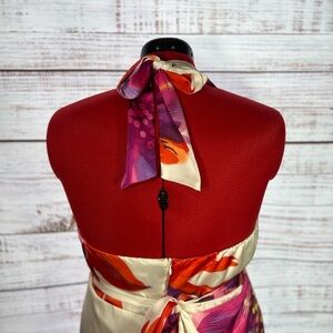 A slinky halter cut, a plunge so good it should come with a warning, and tropical florals that look like they were pulled straight from a 2003 resort ad — this Bisou Bisou by Michele Bohbot dress is everything we loved about early-2000s fashion with none of the regrets.