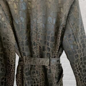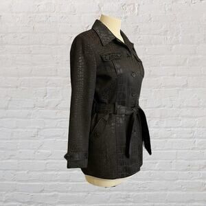 Bisou Bisou Croc Print Belted Jacket Brown/Black Faux Leather Look Trench Size L