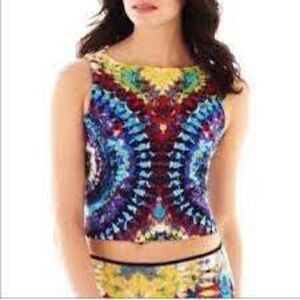 Bisou Bisou Cropped Tie Dye Lined Tank Dressy Top Size M