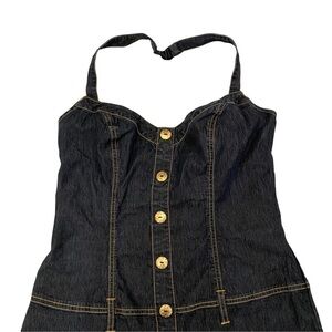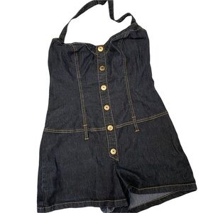 Bisou Bisou Dark Wash Denim Romper Halter Neck Sz 14 Junior