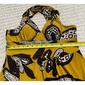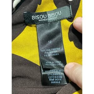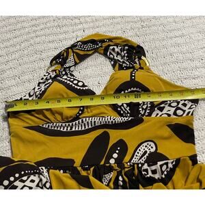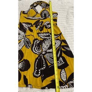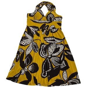 Bisou Bisou Michele Bohbot Dress Floral Criss Cross Straps Sleeveless A-Line Knee Length Women's Size 12 Stretch Pockets Yellow Brown