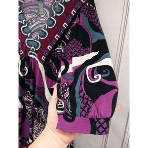 Bisou Bisou Dress Women's SZ 6 Stretch V-Neck High Waist Puff Sleeves Paisley EC