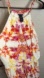 White dress with vibrant floral patterns in pink, red, and yellow. Ideal for sunny days. Features pockets and super comfortable.
