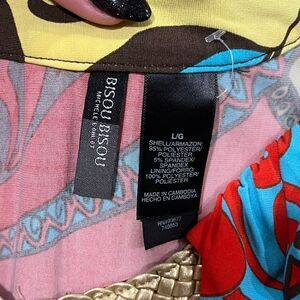 Bisou Bisou Halter Tank Top Floral Print Woven Trim Multicolor Size Large