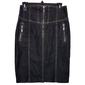 Bisou Bisou Jean Denim Skirt Sz 10 Dark Wash Pencil Skirt Slit 90s Y2K