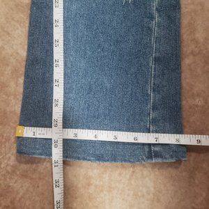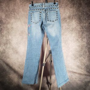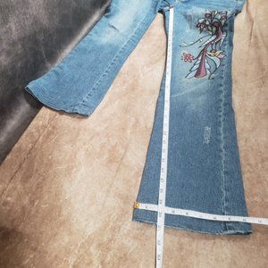 Vintage Bisou Bisou jeans with embroidered peacock design.