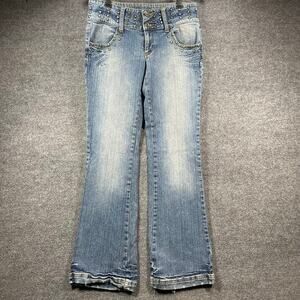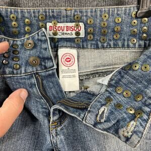 Bisou Bisou Jeans Women's 6 Blue Studded/Jeweled Waist Straight Leg Denim READ