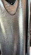 Shimmering metallic sleeveless dress with a sleek design. Perfect for evening wear. Can be dressed up for work or dressed down with jeans for festival or special event.