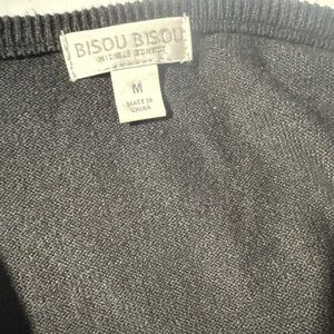 Bisou Bisou Michele Bohbot Black V-Neck Sweater with Zopper Detail Size Medium.